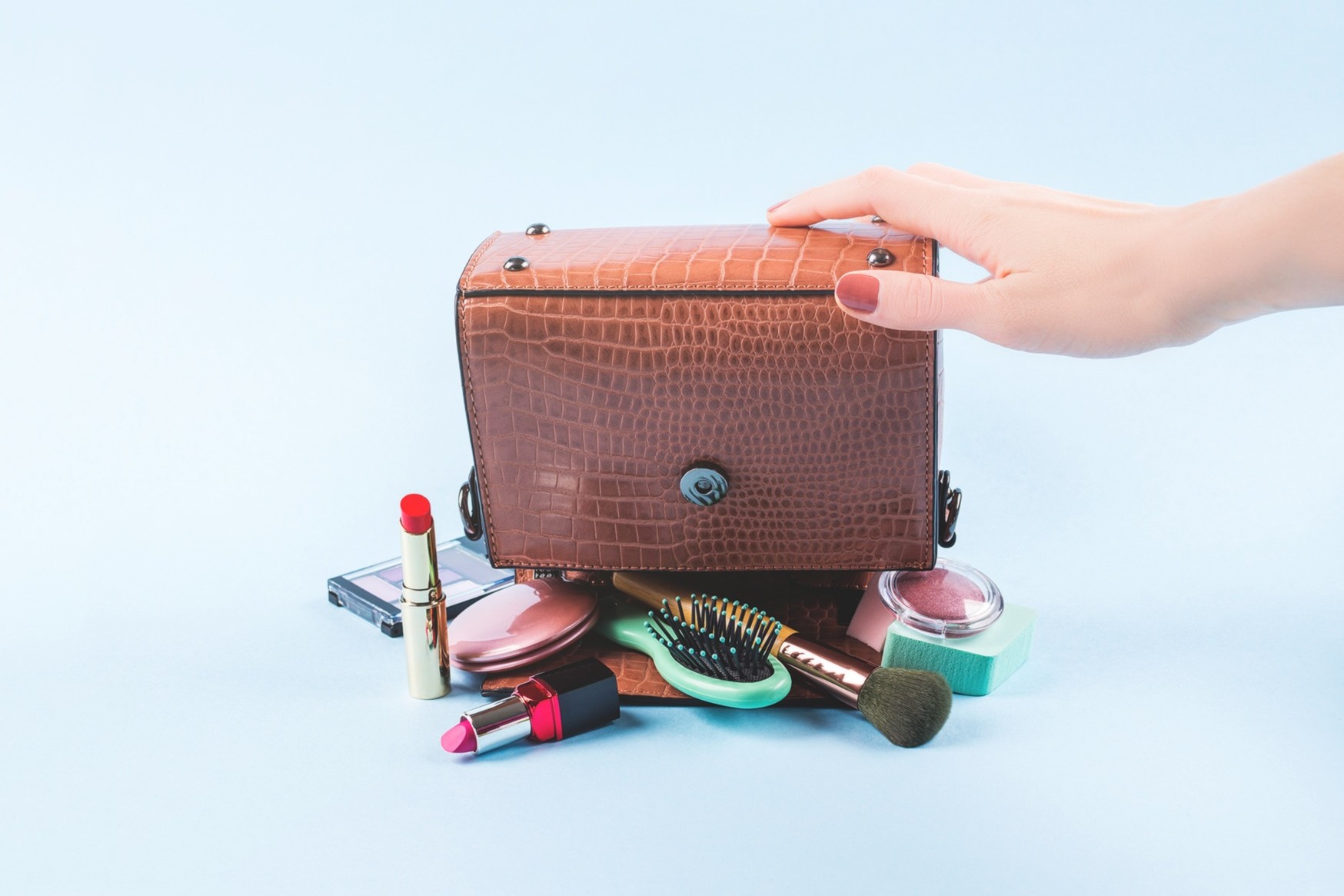 Makeup basics – maybe a lip balm, compact mirror, or that one lipstick that magically makes you look alive.